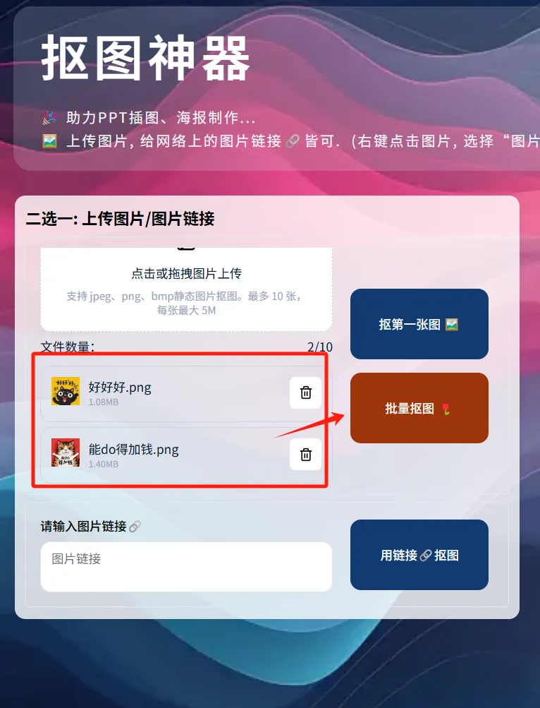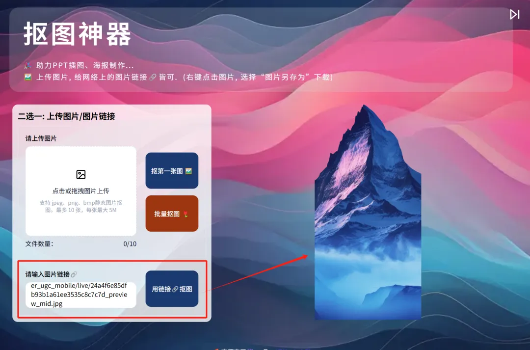 点击「用链接抠图」: