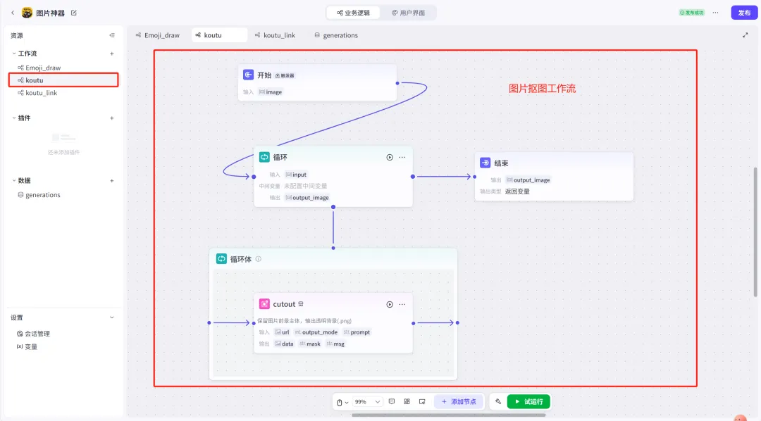 本次使用抠图插件+循环插件。