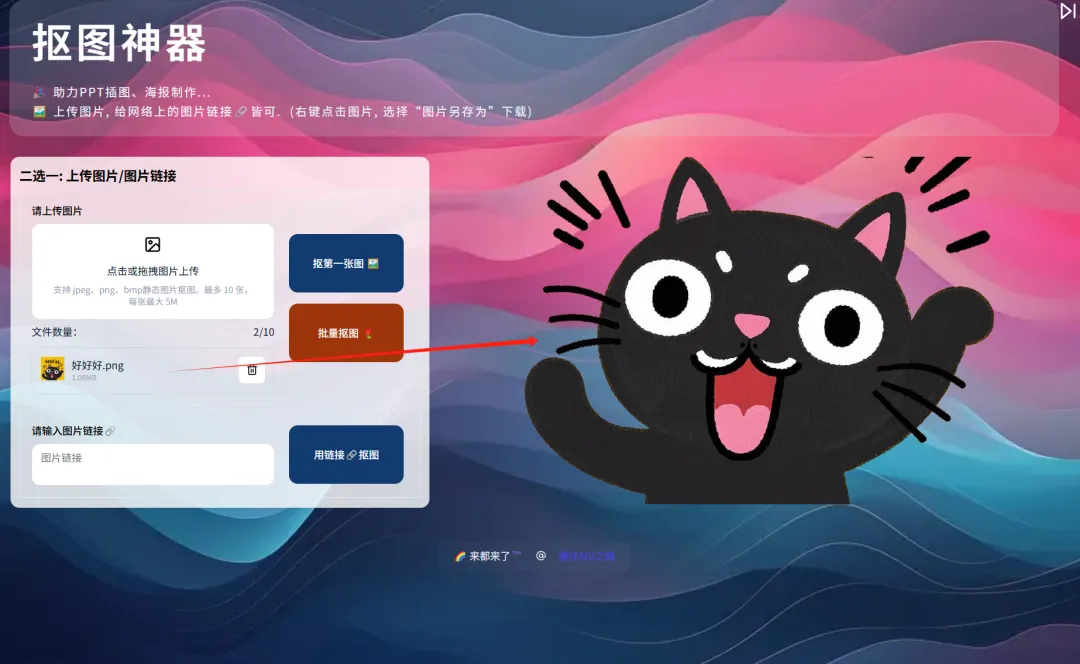 本次使用了两个工作流:图片抠图和链接抠图工作流。其中图片抠图工作流不区分单张与多张,更自由了。