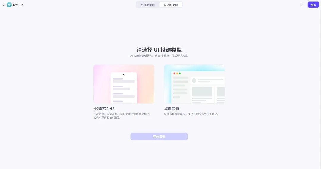 初次搭建UI界面,有两种模式,一种是移动端,可以发布成小程序和H5页面,另一种是桌面网页端形式。